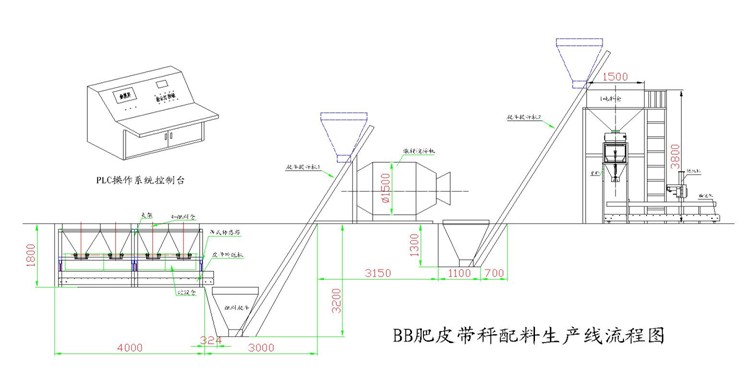 本生產(chǎn)線主要由4-6個原料倉、皮帶稱重輸送機(jī)、爬斗或皮帶輸送提升機(jī)、間歇式混合機(jī)、成品儲存?zhèn)}1、自動定量包裝機(jī)組以及系統(tǒng)總控柜組成